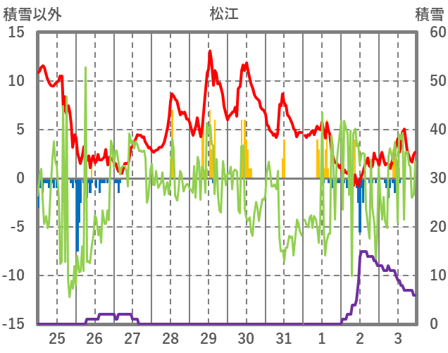 | 日 | 時 | 気温 | 降水 | 風向/風速 | 日照 | 積雪 | 降雪 |