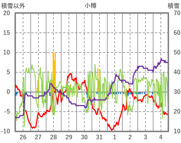 | 日 | 時 | 気温 | 降水 | 風向/風速 | 日照 | 積雪 | 降雪 |