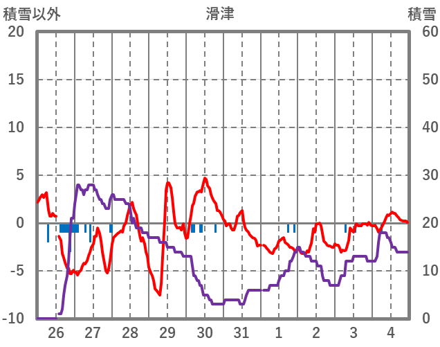 | 日 | 時 | 気温 | 降水 | 風向/風速 | 日照 | 積雪 | 降雪 |