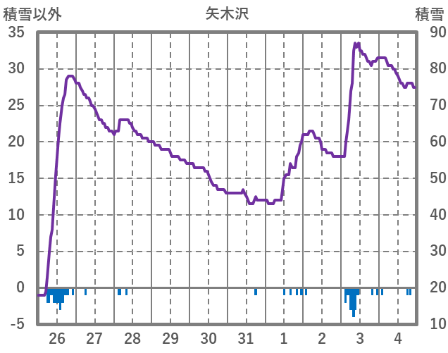| 日 | 時 | 気温 | 降水 | 風向/風速 | 日照 | 積雪 | 降雪 |
