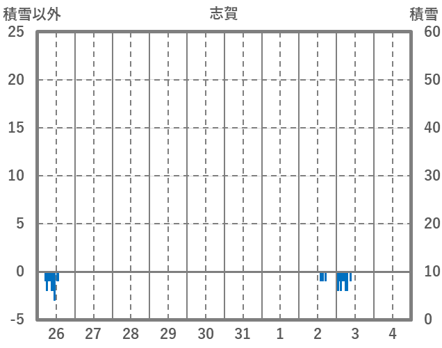 | 日 | 時 | 気温 | 降水 | 風向/風速 | 日照 | 積雪 | 降雪 |