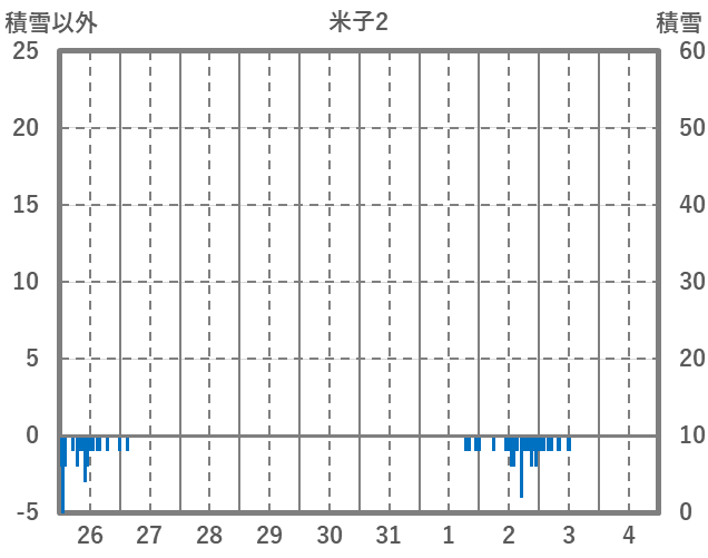 | 日 | 時 | 気温 | 降水 | 風向/風速 | 日照 | 積雪 | 降雪 |