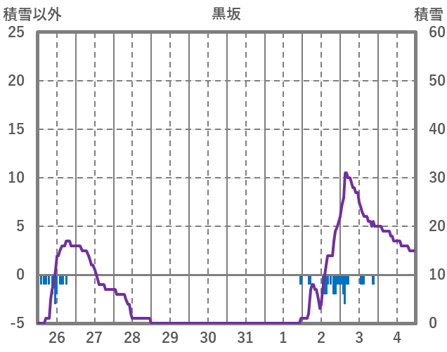 | 日 | 時 | 気温 | 降水 | 風向/風速 | 日照 | 積雪 | 降雪 |