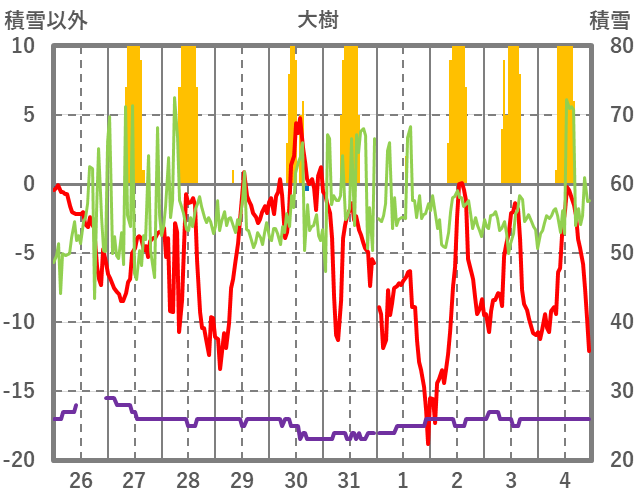 | 10 | -4.4 | 0 | NNW/3.6 | 30 | 26 | 0 | |