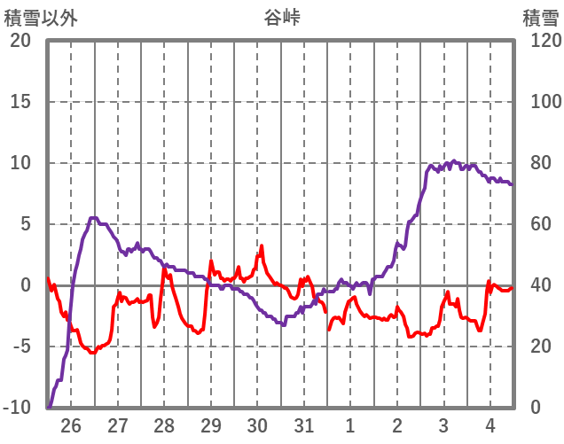 | 日 | 時 | 気温 | 降水 | 風向/風速 | 日照 | 積雪 | 降雪 |