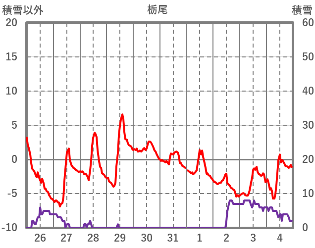 | 日 | 時 | 気温 | 降水 | 風向/風速 | 日照 | 積雪 | 降雪 |