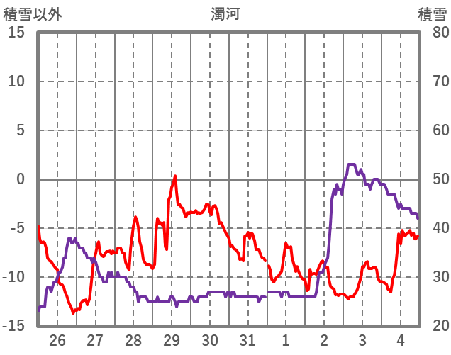 | 日 | 時 | 気温 | 降水 | 風向/風速 | 日照 | 積雪 | 降雪 |