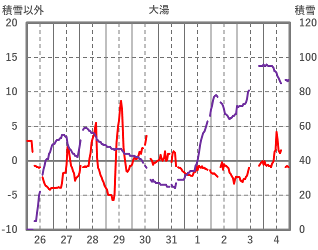 | 日 | 時 | 気温 | 降水 | 風向/風速 | 日照 | 積雪 | 降雪 |