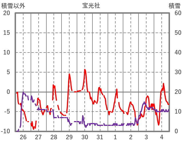 | 日 | 時 | 気温 | 降水 | 風向/風速 | 日照 | 積雪 | 降雪 |