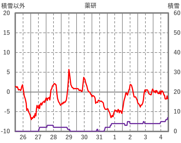 | 日 | 時 | 気温 | 降水 | 風向/風速 | 日照 | 積雪 | 降雪 |
