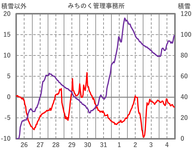 | 日 | 時 | 気温 | 降水 | 風向/風速 | 日照 | 積雪 | 降雪 |