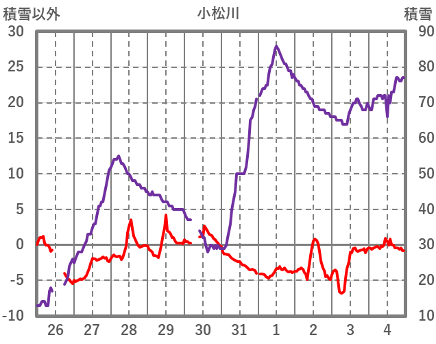 | 日 | 時 | 気温 | 降水 | 風向/風速 | 日照 | 積雪 | 降雪 |