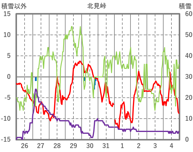 | 日 | 時 | 気温 | 降水 | 風向/風速 | 日照 | 積雪 | 降雪 |