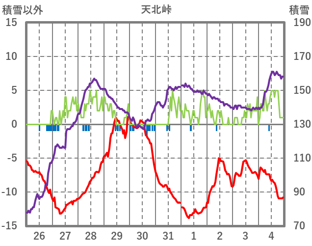 | 日 | 時 | 気温 | 降水 | 風向/風速 | 日照 | 積雪 | 降雪 |