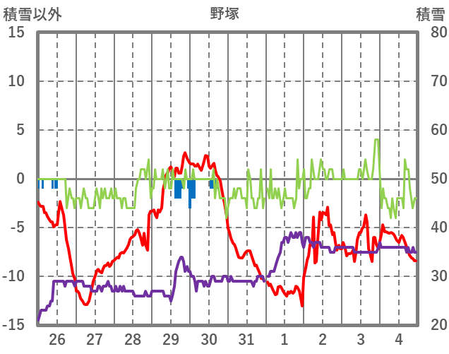 | 日 | 時 | 気温 | 降水 | 風向/風速 | 日照 | 積雪 | 降雪 |