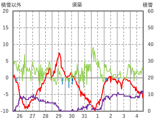 | 日 | 時 | 気温 | 降水 | 風向/風速 | 日照 | 積雪 | 降雪 |