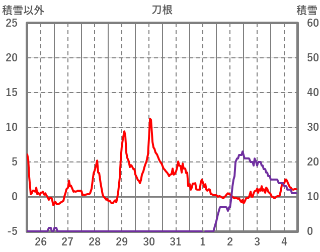 | 日 | 時 | 気温 | 降水 | 風向/風速 | 日照 | 積雪 | 降雪 |