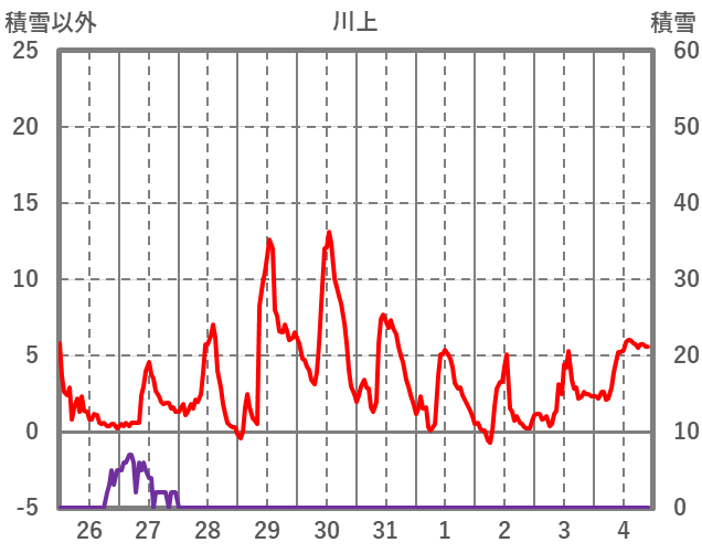 | 日 | 時 | 気温 | 降水 | 風向/風速 | 日照 | 積雪 | 降雪 |
