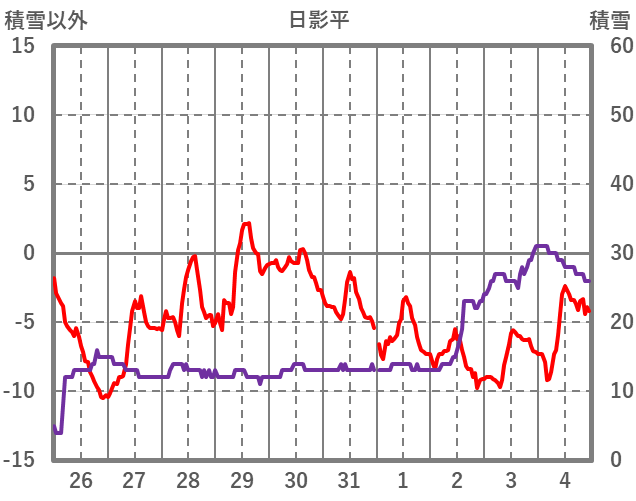 | 日 | 時 | 気温 | 降水 | 風向/風速 | 日照 | 積雪 | 降雪 |