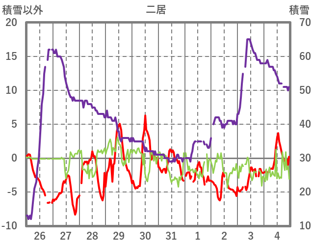 | 日 | 時 | 気温 | 降水 | 風向/風速 | 日照 | 積雪 | 降雪 |