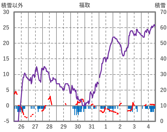 | 日 | 時 | 気温 | 降水 | 風向/風速 | 日照 | 積雪 | 降雪 |
