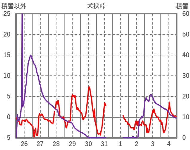 | 日 | 時 | 気温 | 降水 | 風向/風速 | 日照 | 積雪 | 降雪 |