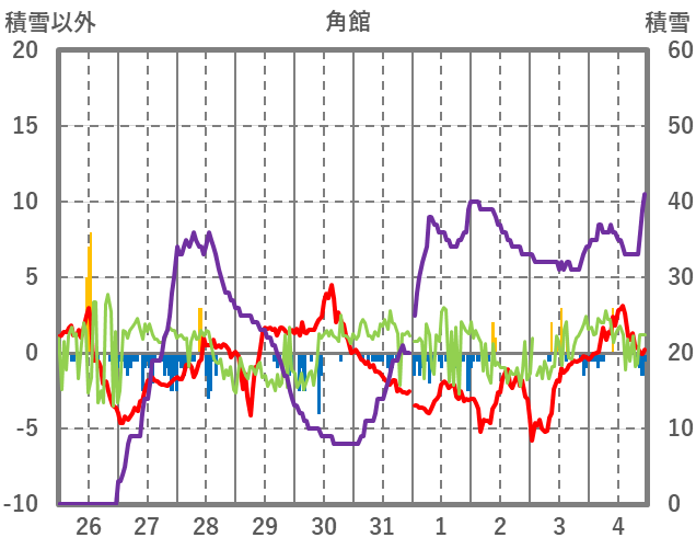 | 日 | 時 | 気温 | 降水 | 風向/風速 | 日照 | 積雪 | 降雪 |
