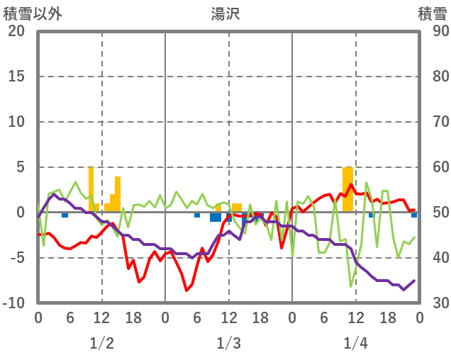 | 日 | 時 | 気温 | 降水 | 風向/風速 | 日照 | 積雪 | 降雪 |