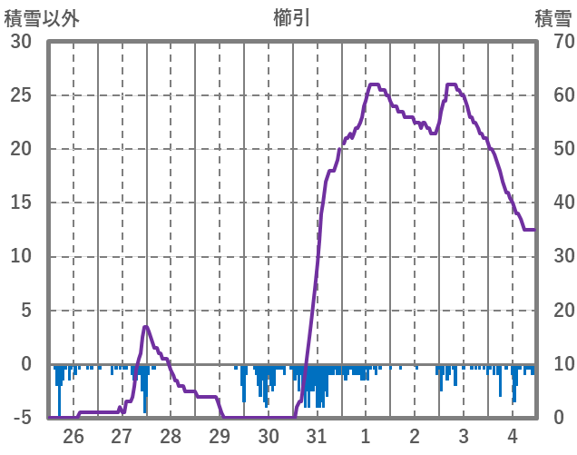 | 日 | 時 | 気温 | 降水 | 風向/風速 | 日照 | 積雪 | 降雪 |