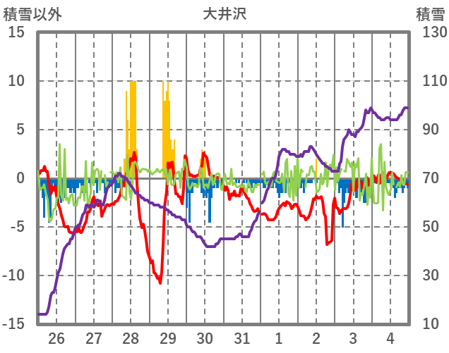 | 日 | 時 | 気温 | 降水 | 風向/風速 | 日照 | 積雪 | 降雪 |
