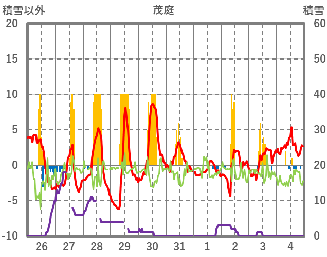 | 日 | 時 | 気温 | 降水 | 風向/風速 | 日照 | 積雪 | 降雪 |