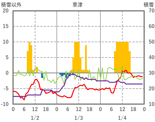 | 日 | 時 | 気温 | 降水 | 風向/風速 | 日照 | 積雪 | 降雪 |