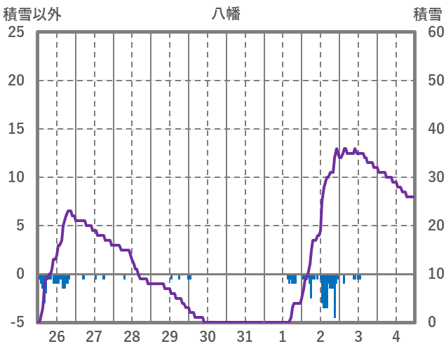 | 日 | 時 | 気温 | 降水 | 風向/風速 | 日照 | 積雪 | 降雪 |