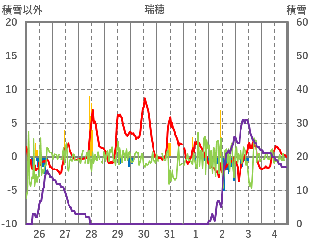 | 日 | 時 | 気温 | 降水 | 風向/風速 | 日照 | 積雪 | 降雪 |