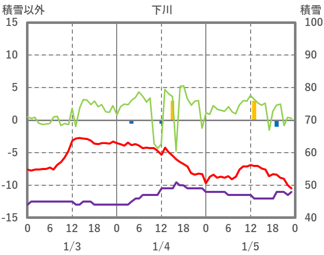| 日 | 時 | 気温 | 降水 | 風向/風速 | 日照 | 積雪 | 降雪 |