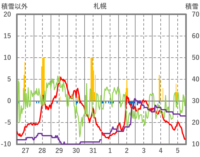 | 日 | 時 | 気温 | 降水 | 風向/風速 | 日照 | 積雪 | 降雪 |