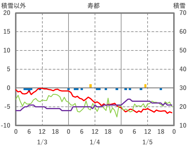 | 日 | 時 | 気温 | 降水 | 風向/風速 | 日照 | 積雪 | 降雪 |