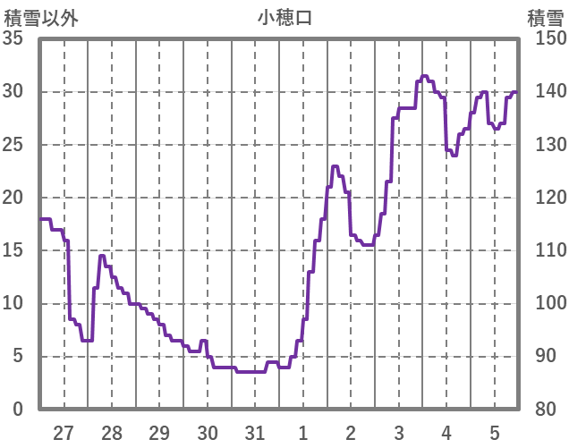 | 日 | 時 | 気温 | 降水 | 風向/風速 | 日照 | 積雪 | 降雪 |
