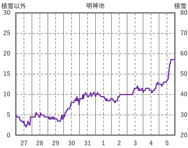 | 日 | 時 | 気温 | 降水 | 風向/風速 | 日照 | 積雪 | 降雪 |