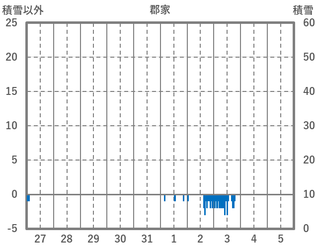 | 日 | 時 | 気温 | 降水 | 風向/風速 | 日照 | 積雪 | 降雪 |