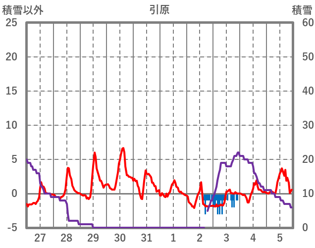 | 日 | 時 | 気温 | 降水 | 風向/風速 | 日照 | 積雪 | 降雪 |