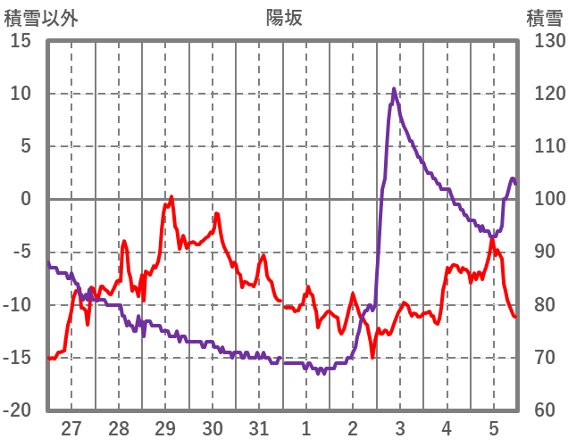 | 日 | 時 | 気温 | 降水 | 風向/風速 | 日照 | 積雪 | 降雪 |