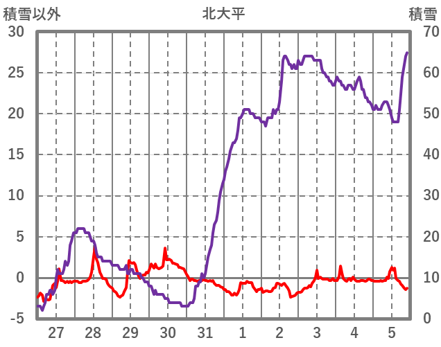 | 日 | 時 | 気温 | 降水 | 風向/風速 | 日照 | 積雪 | 降雪 |