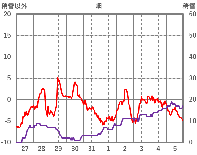 | 日 | 時 | 気温 | 降水 | 風向/風速 | 日照 | 積雪 | 降雪 |