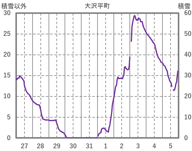 | 日 | 時 | 気温 | 降水 | 風向/風速 | 日照 | 積雪 | 降雪 |