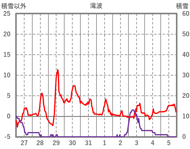 | 日 | 時 | 気温 | 降水 | 風向/風速 | 日照 | 積雪 | 降雪 |