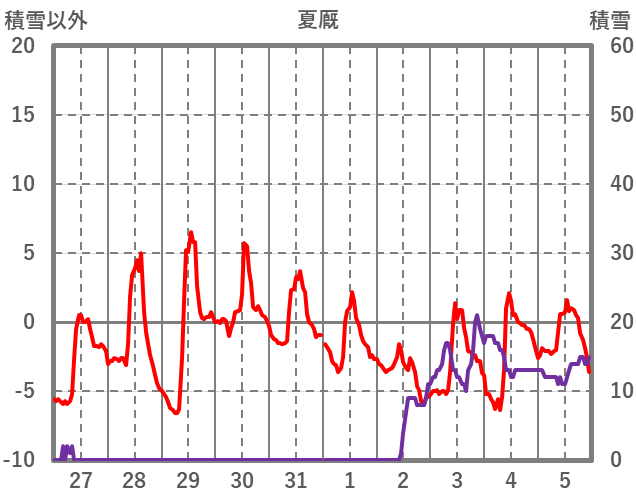 | 日 | 時 | 気温 | 降水 | 風向/風速 | 日照 | 積雪 | 降雪 |
