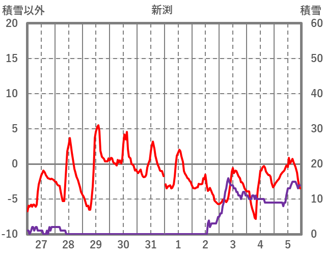 | 日 | 時 | 気温 | 降水 | 風向/風速 | 日照 | 積雪 | 降雪 |