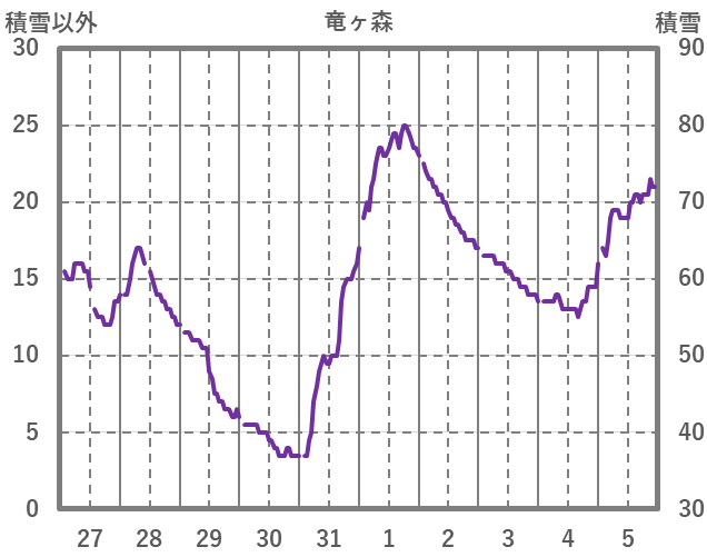 | 日 | 時 | 気温 | 降水 | 風向/風速 | 日照 | 積雪 | 降雪 |