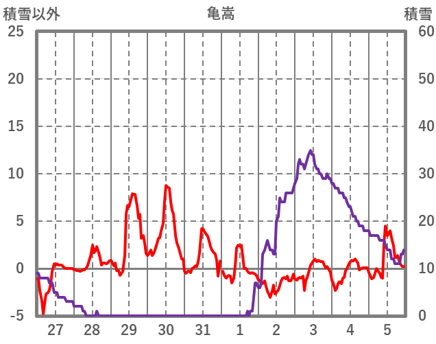 | 日 | 時 | 気温 | 降水 | 風向/風速 | 日照 | 積雪 | 降雪 |